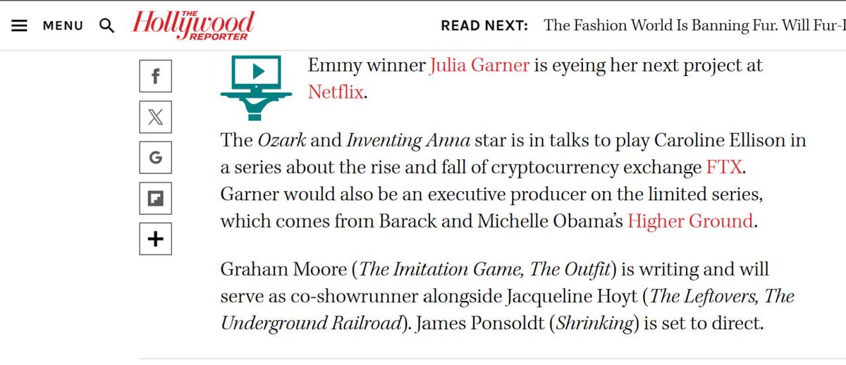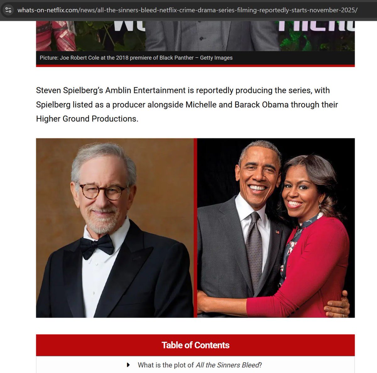 The Obamas are also producing content that builds sympathy for disgraced, jailed Democratic mega-donors, a key step to securing 2028 campaign funds. According to The Hollywood Reporter, actress Julia Garner will star as the girlfriend of FTX founder Sam Bankman-Fried in a Higher Ground Productions Netflix drama described as a wild romance about Bankman-Fried and Caroline Ellison. Notably, the Obamas appear to have ties to FTX, as former Obama CFTC Commissioner Mark Wetjen served as FTX's head of policy and attended a 2022 meeting at the Biden White House, a White House President Trump has claimed was controlled by Barack Hussein Obama.