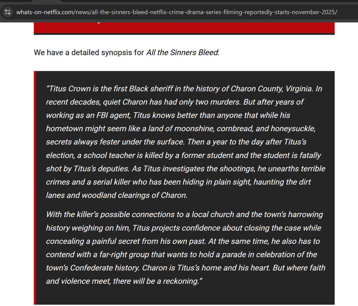 Another concerning indicator of Michelle Obama's potential 2028 candidacy is the programming Higher Ground Productions is developing. The upcoming series “All the Sinners Bleed” features a plot about a Southern Virginia sheriff confronting a “far-right” group marching with Tiki Torches to honor Confederate monuments.