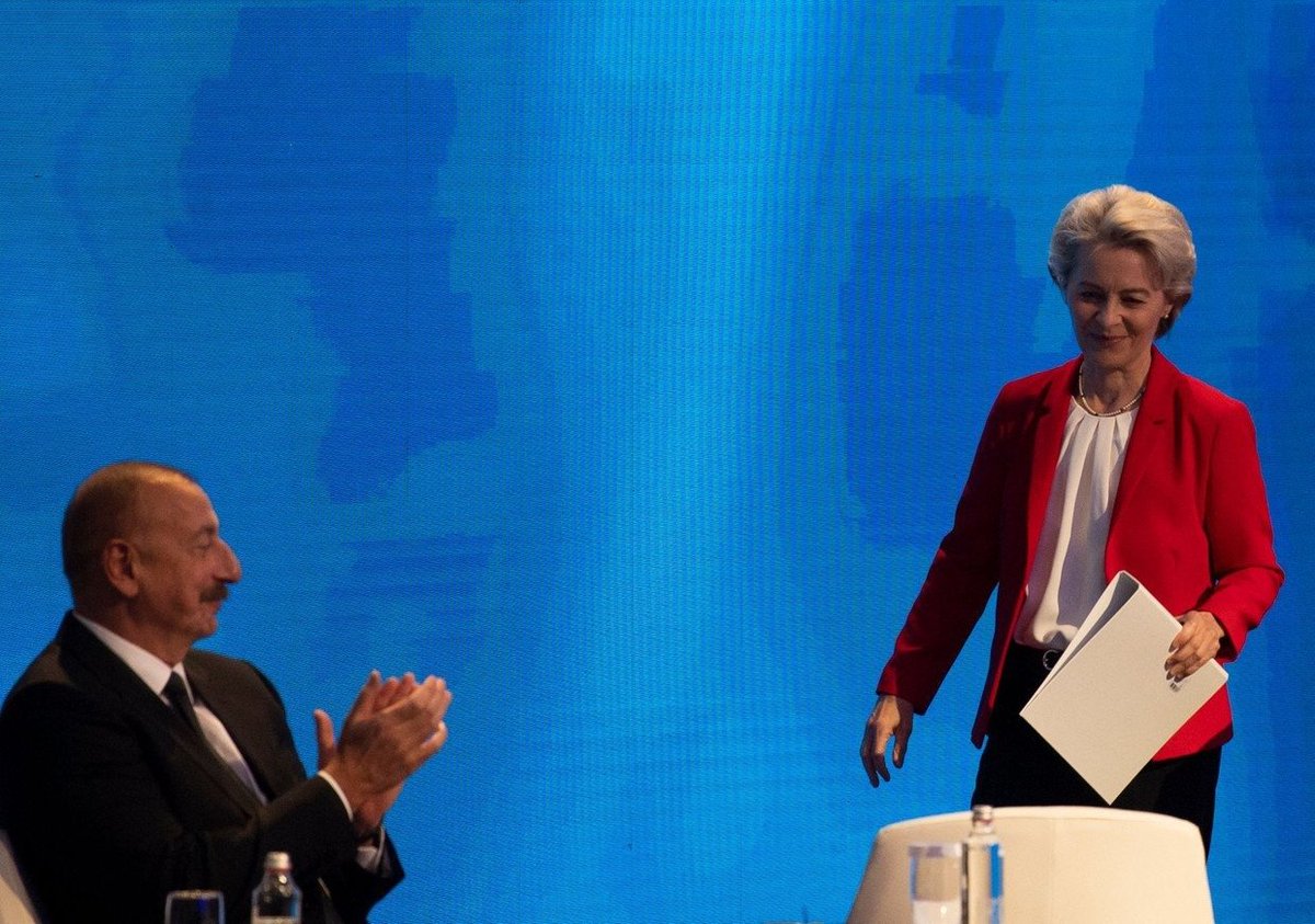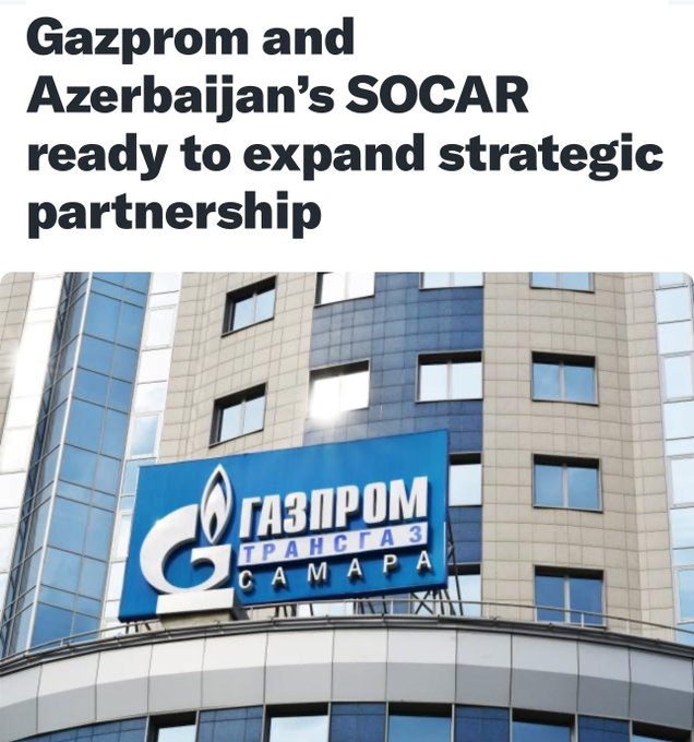 1/Er gaat nog altijd Russisch gas naar Europa, nu via Azerbeidzjan. Gazprom en SOCAR (het energiebedrijf van A.) breiden hun samenwerking uit. Aliyev, dictator van A., is niet alleen bevriend met Ursula vonder Leyen -die met Aliyev een gasleveringscontract azertag.az/en/xeber/_quot…