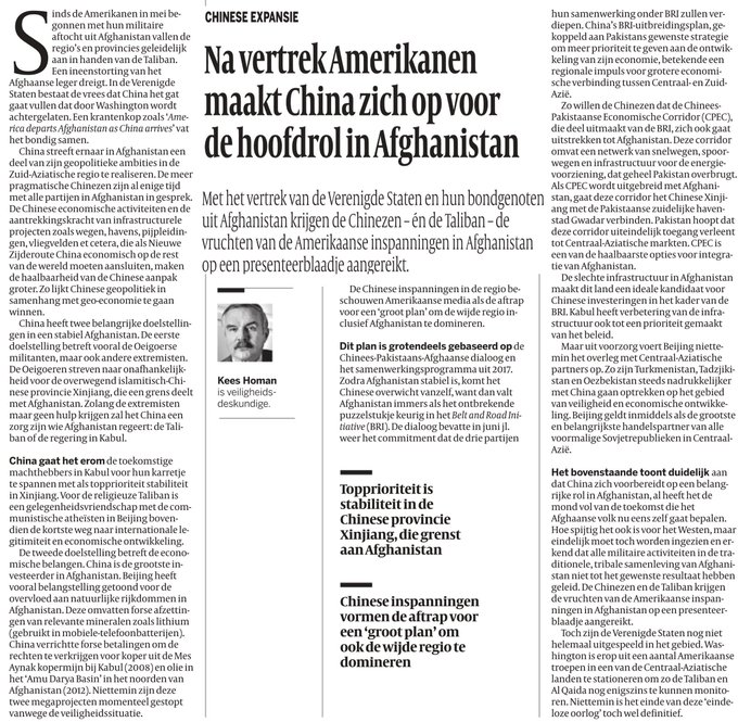 9/In Afghanistan krijgt China de vruchten van de westerse inspanningen op een presenteerblaadje aangereikt. Het was het nog ontbrekend puzzelstuk in het ‘Belt&Road Initiative’ en bevat veel relevante mineralen (als lithium), koper en olie