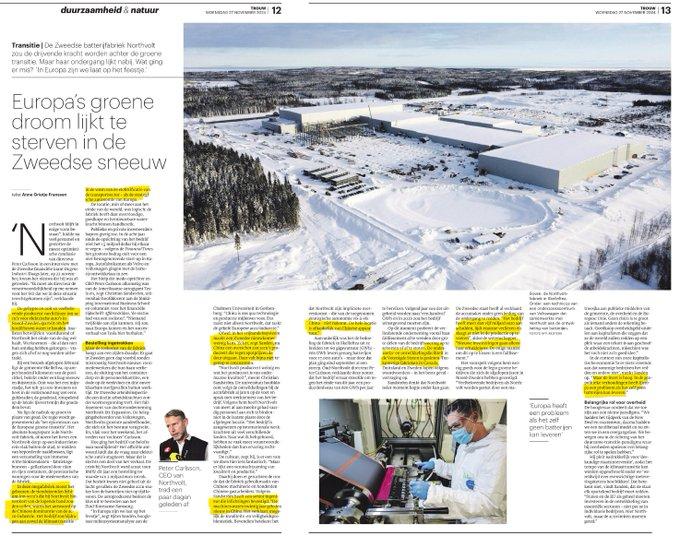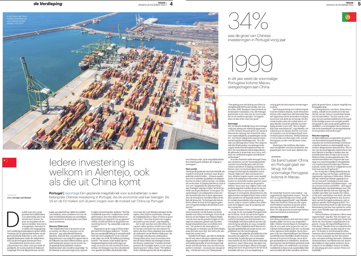 11/Terwijl de Zweedse batterijfabriek Northvolt -die de drijvende kracht achter de Europese energietransitie zou worden- omvalt, plant China een megabatterijfabriek bij een strategische haven in Portugal. Bij snelle afbouw van fossiel, wordt Europa geheel afhankelijk van China