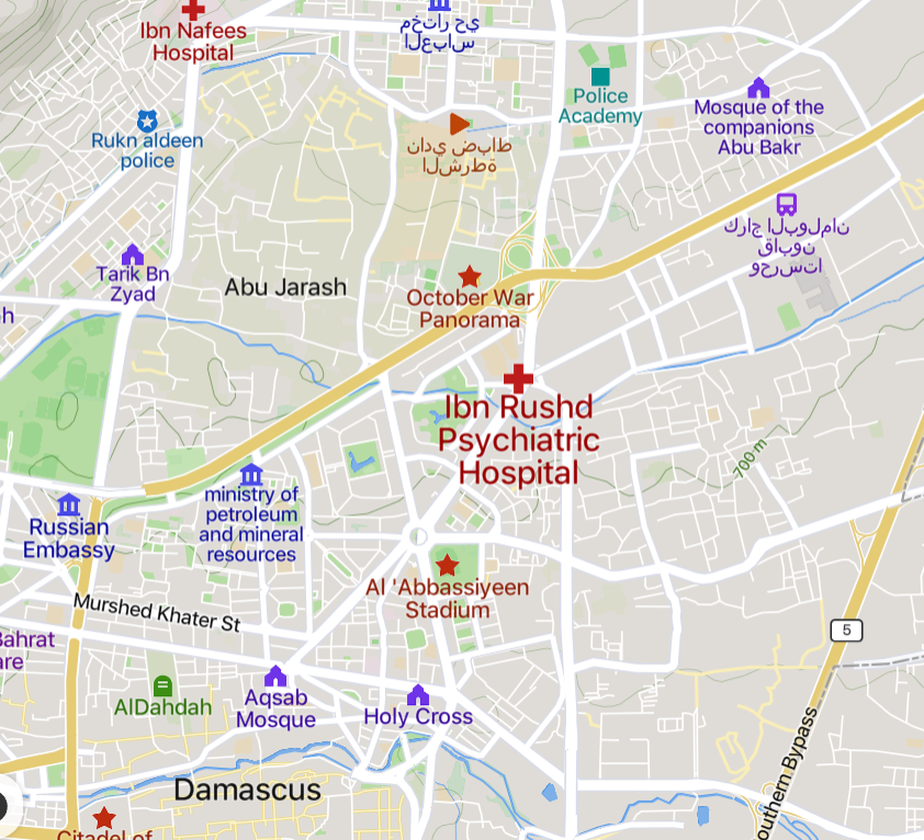 El hospital psiquiátrico se llama Ibn Rushd, se encuentra en Damasco. Se dedicaron a inspeccionar el lugar y se llevaron a unos cuantos internos, ante el terror de estos. Nadie sabía, en ese momento, a donde se los llevaban. El centro permaneció secuestrado por los yihadistas