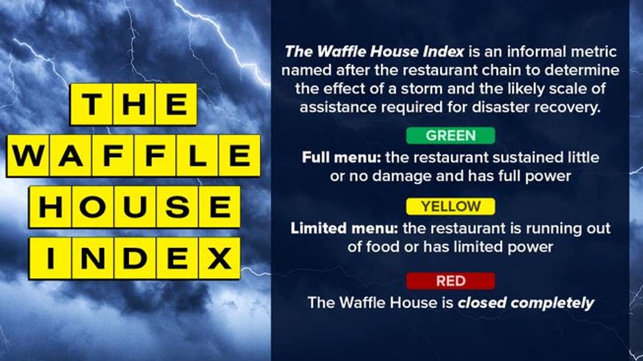 Operational Meteorologists SME "Dan" is the wall of monitors bringing real time status of individual Waffle House franchise stores to the WH-JIOCC which helps the team make status reports to regional managers the decision makers on whether to keep a store open or closed this information is also sent to FEMA and other Emergency Management Agencies which is used to predict likely areas that will be impacted from natural disasters to better coordinate emergency resources.