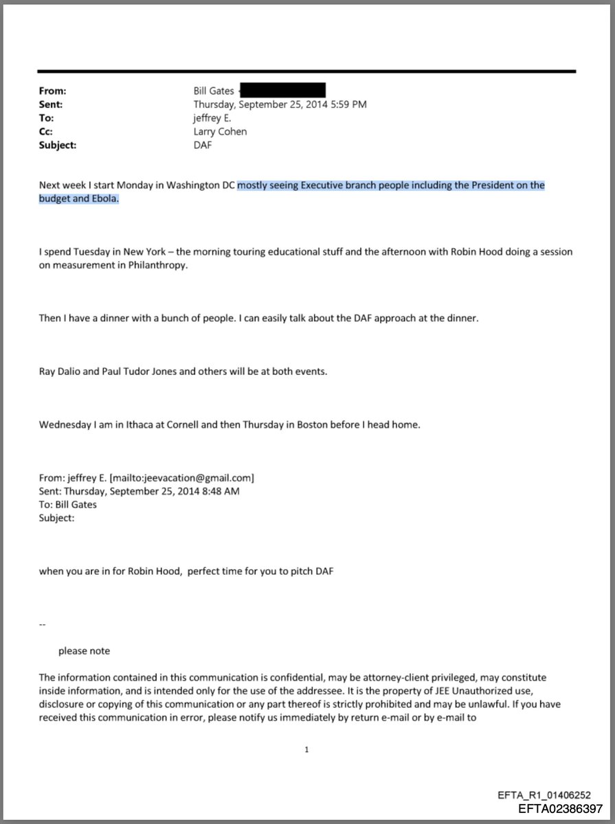 ▪️ Gates disclosed his upcoming Ebola meeting with Obama—to Jeffrey Epstein