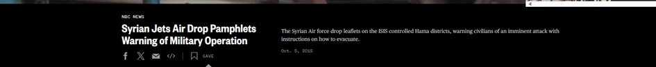 3/10 On 5 October 2015, the Syrian Air Force dropped leaflets on ISIS-controlled districts of Hama, warning civilians of an impending military operation and providing evacuation instructions.