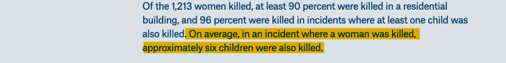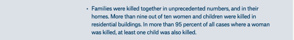 In >90% of cases where women and children died, they were killed in residential buildings.