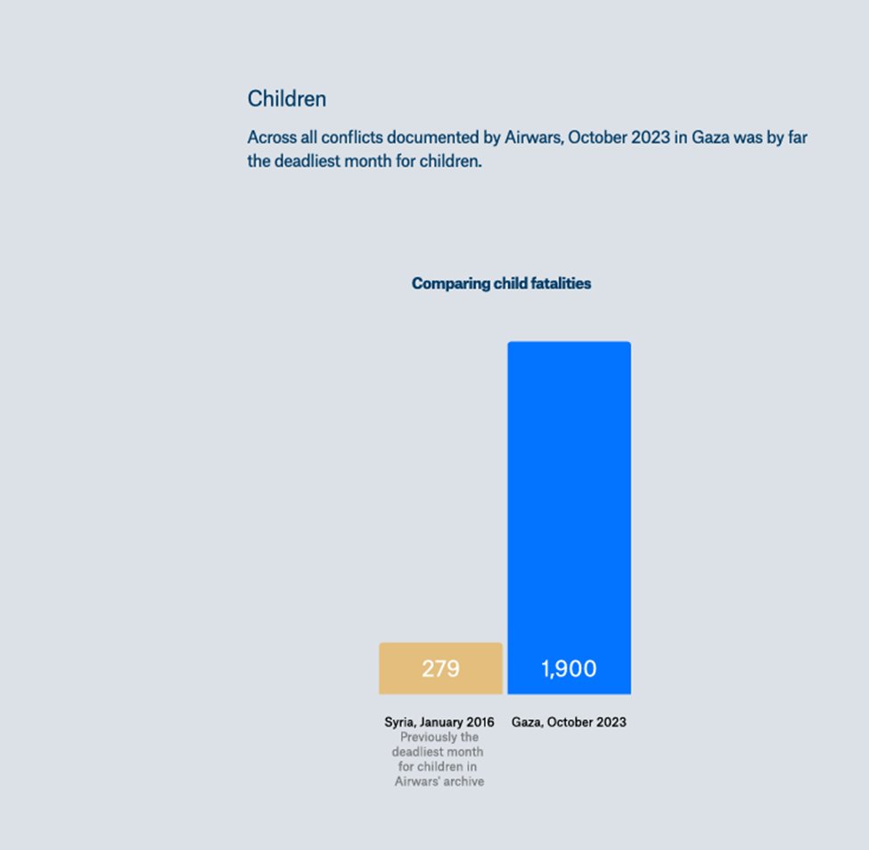 8/20 October 2023 - not even a complete month of war, as the war started on the 7th - is by far the deadliest month for children in all wars Airwars has studied.