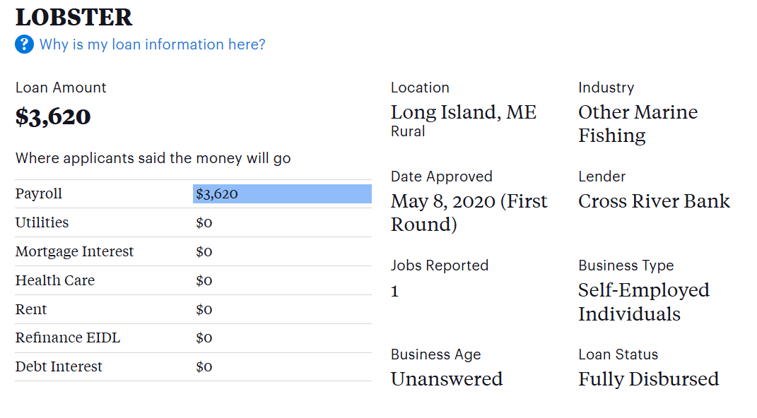 Excessive spending of PPP loans on lobster and crab was well-known.