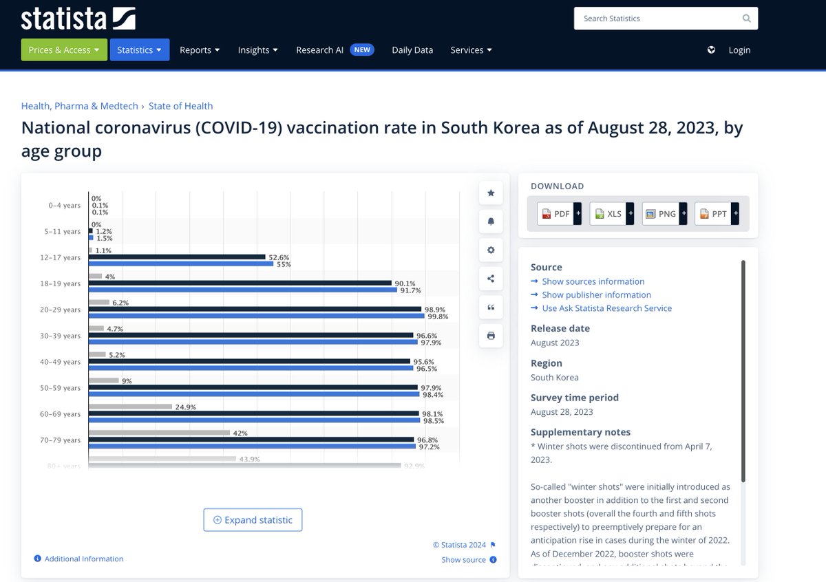 (2/6) South Korea "vaccinated" ~88% of its total population with the COVID injections by August 2023; for ages 18 and up, rates were between ~90 and ~99%.