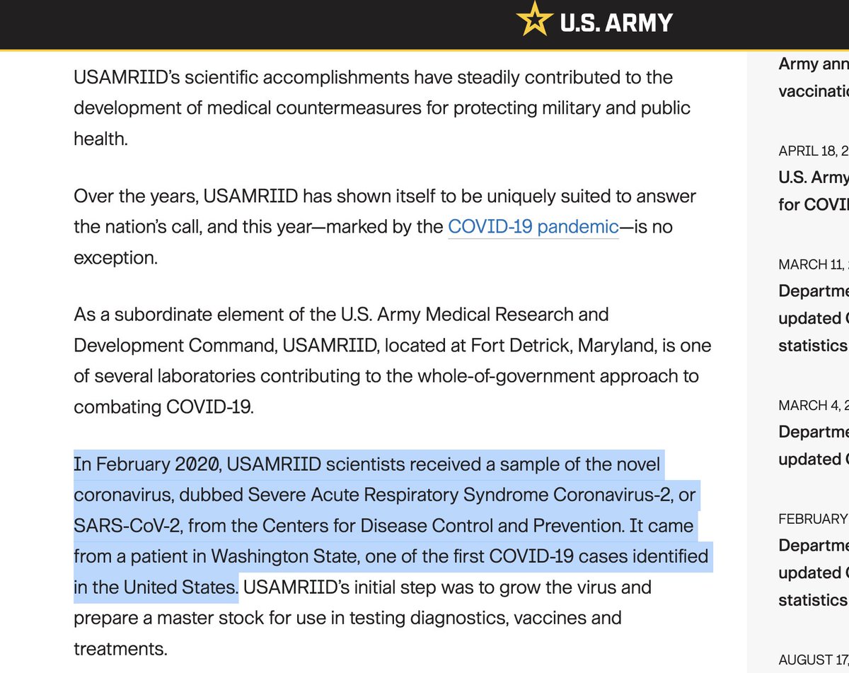 The U.S. Army reported in September of 2020 that the "master stock" (what Sammons-Jackson referred to), was received in February 2020 from "a patient in Washington State."