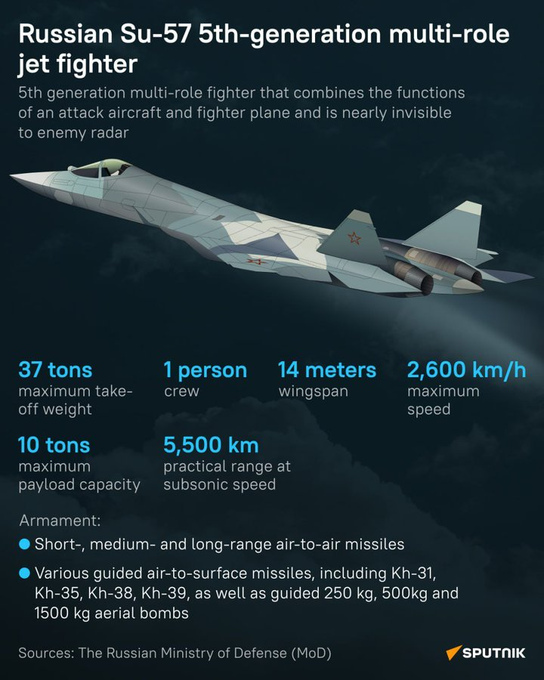 The Su-57 carries a much more diverse and advanced weapon loadout, including various short, medium, and long-range air-to-air missiles and guided aerial bombs. In contrast, the F-35 is limited to a smaller selection of air-to-air missiles and bombs.
