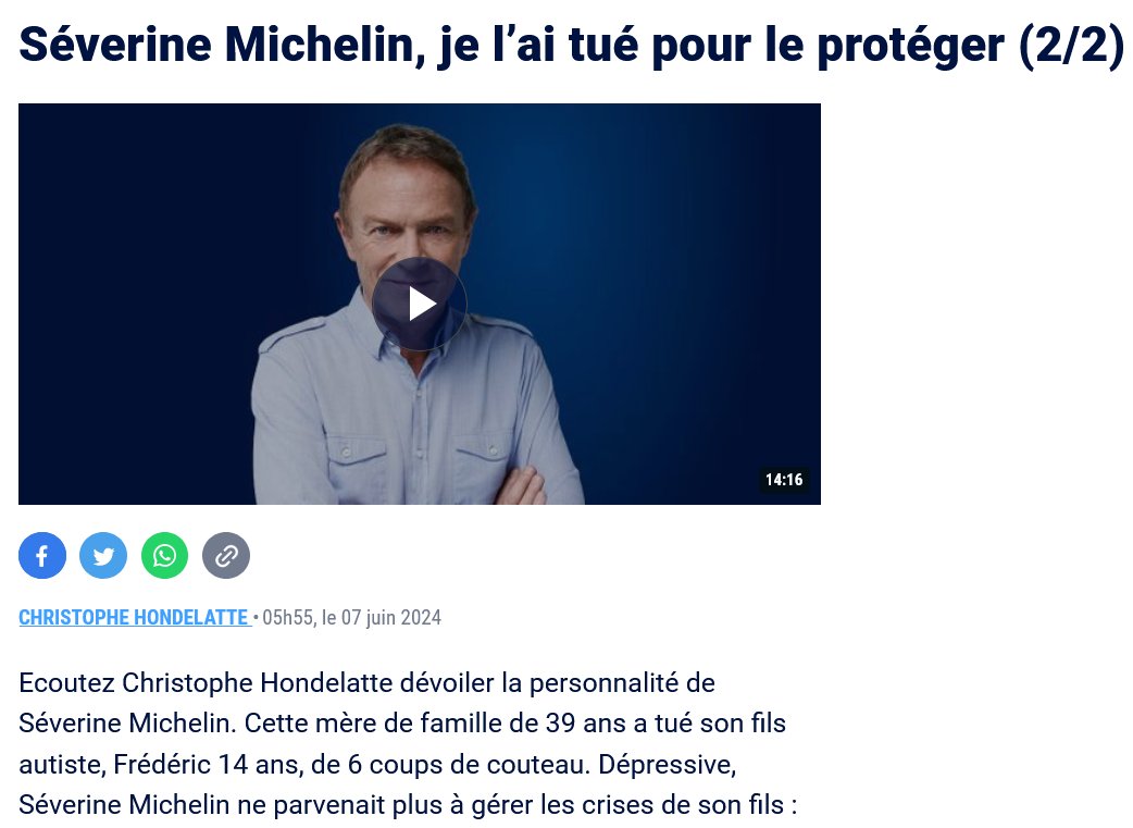 Suite des analyses d'auticides maternels (= meurtres parentaux d'enfants autistes), dont Samuel le Bihan prétend qu'ils se produisent une fois tous les dix ans.