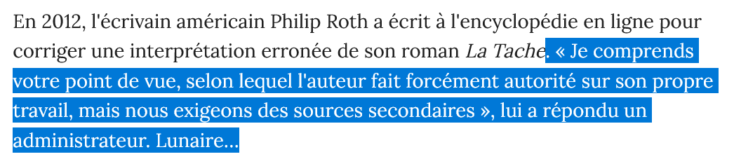8e erreur : la règle de l'obligation de citer des sources secondaires n'est pas "lunaire", elle est précisément la règle qui protège le mieux ce commun numérique des dérives sur les biographies.