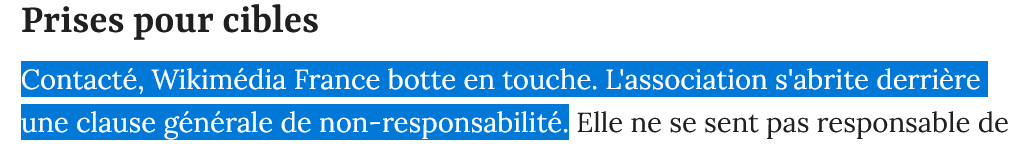 3e erreur : si Wikimédia France "n'y trouve rien à redire", c'est normal : l'objet de l'asso n'est pas de "superviser" Wikipédia (voir ses statuts)