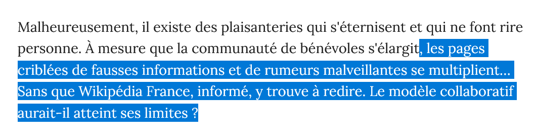 Précision : Wikipédia est en partie mon sujet de thèse en sciences de l'information et de la communication