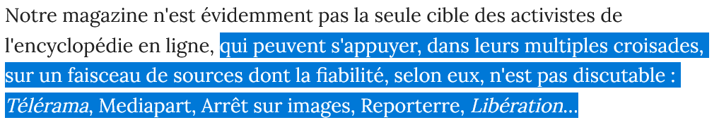 4e GROSSE erreur : la fiabilité des médias n'est pas décidée par des contributeurs ou contributrices selon leur bon vouloir ou leur sensibilité politique personnelle.