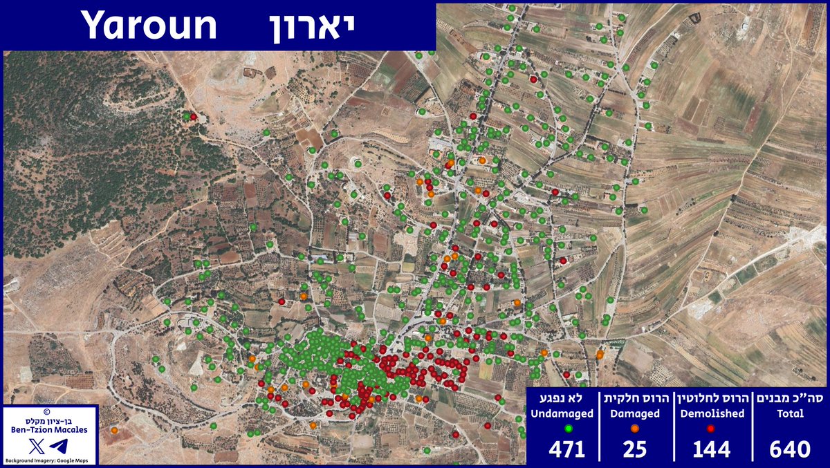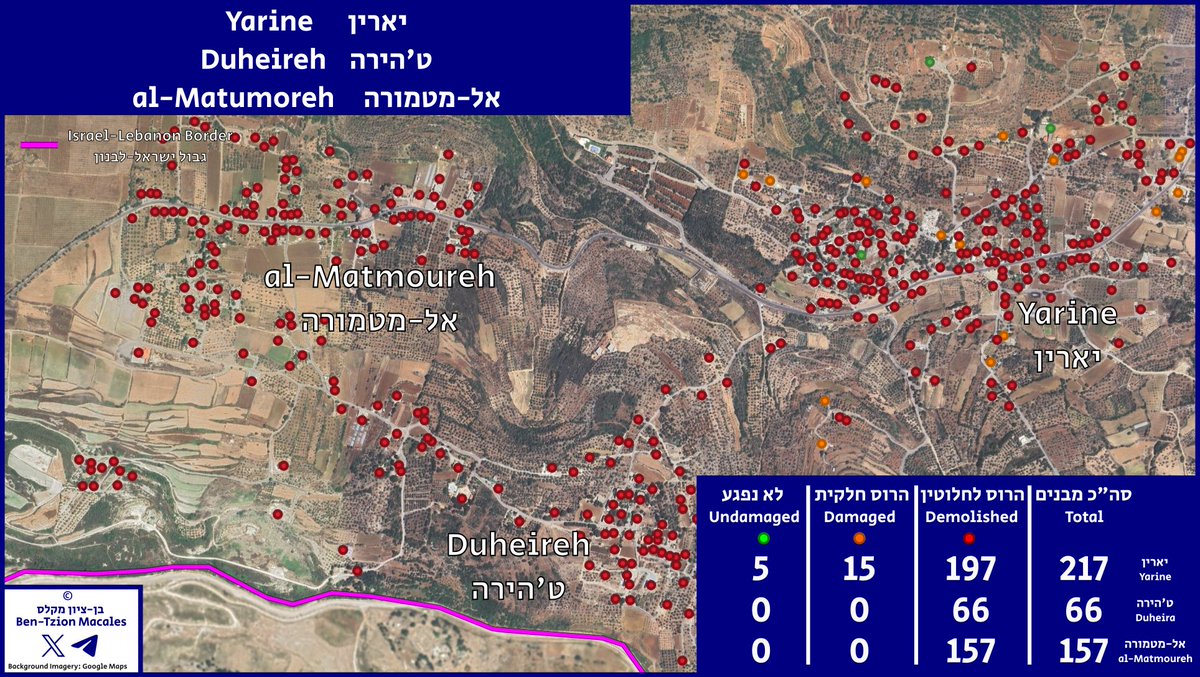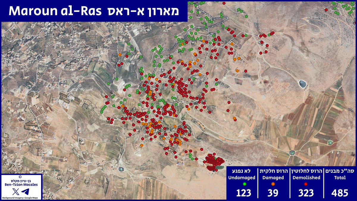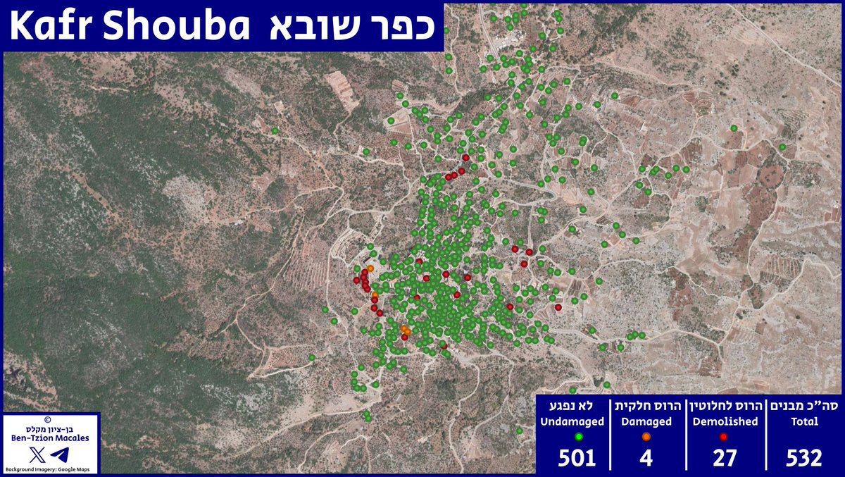 In this large project, we will go over the destruction in each of the 25 villages near the border between Israel and Lebanon. The information is a detailed estimate of the state of buildings in the villages, conducted using high-quality satellite images published by OnGeo, Planet, and recent Sentinel 2 satellite imagery. There could be assessment errors, but the scope remains quite the same.