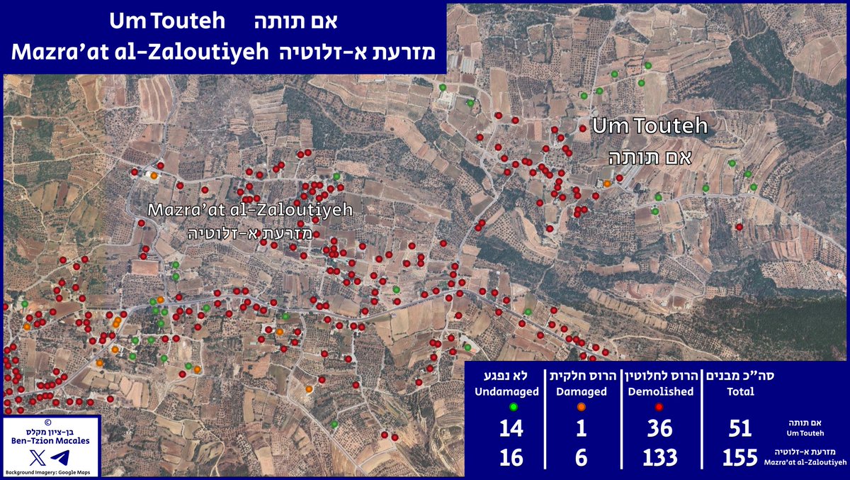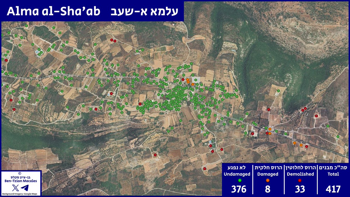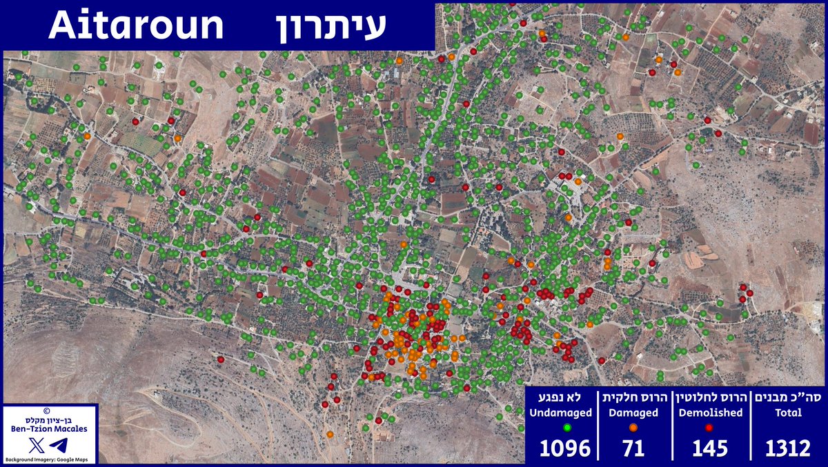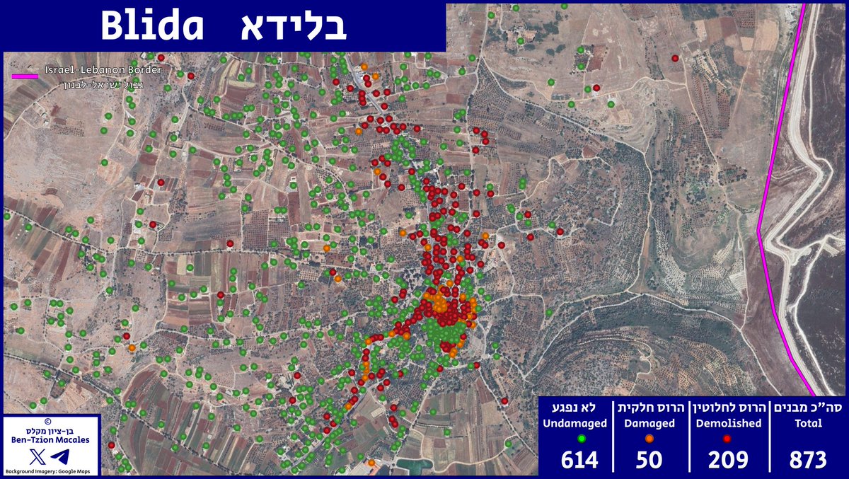In this large project, we will go over the destruction in each of the 25 villages near the border between Israel and Lebanon. The information is a detailed estimate of the state of buildings in the villages, conducted using high-quality satellite images published by OnGeo, Planet, and recent Sentinel 2 satellite imagery. There could be assessment errors, but the scope remains quite the same.