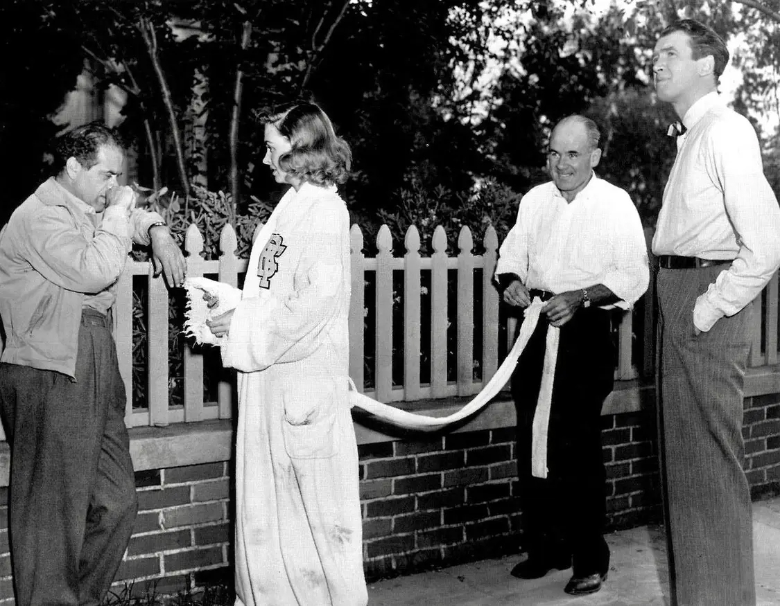 Capra used that take in the final cut and gave the crew member who dropped the props a $10 bonus for improving the sound. And if you watch carefully, we see George smile – that was Stewart smiling at Mitchell’s ad-lib.