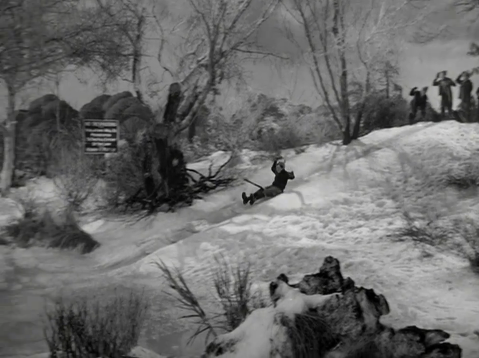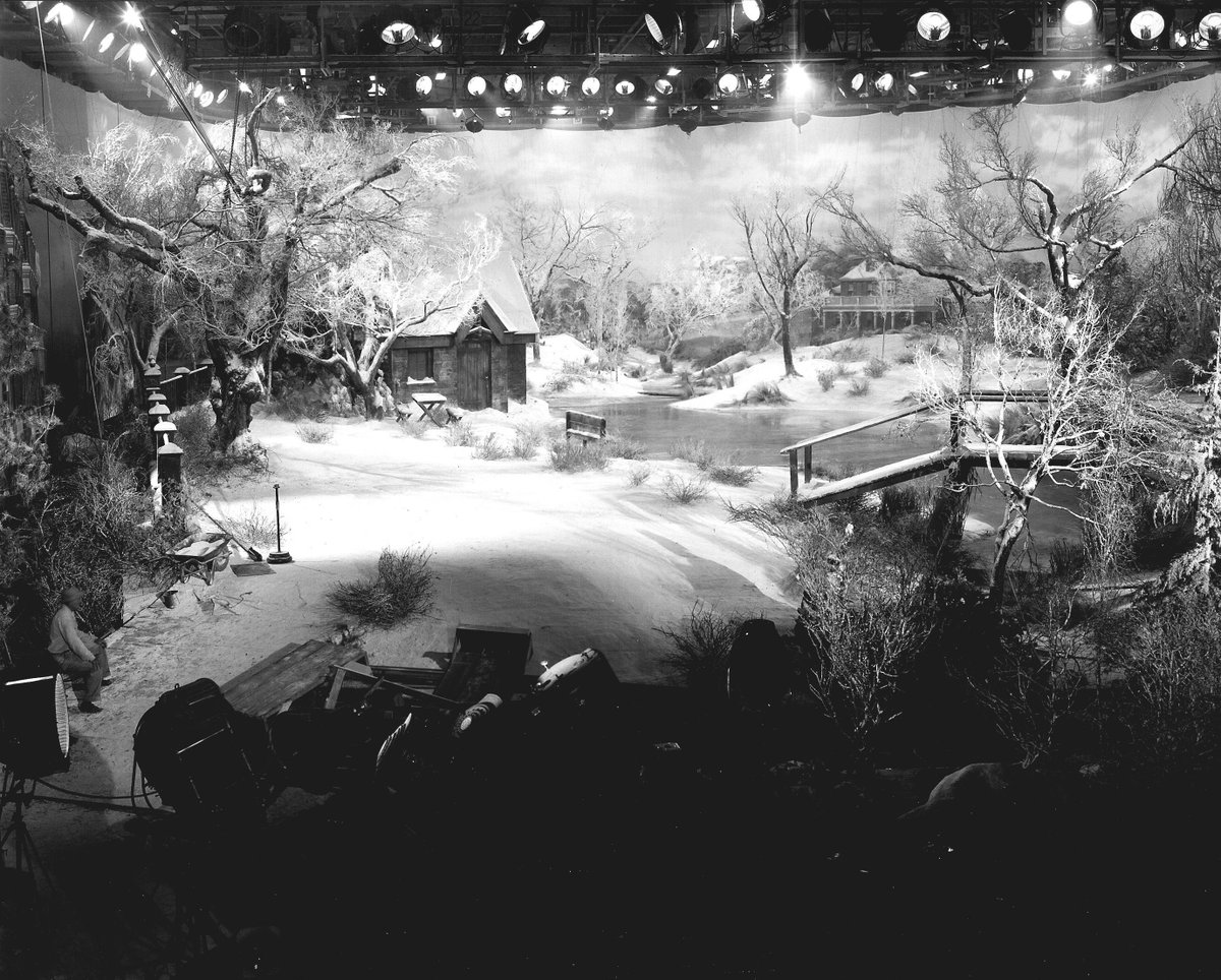 The film opens with a young George sledging on a lake. It was filmed on a huge indoor set but originally, the boys were playing ice hockey on a lake which was part of Potter’s property, causing Potter to release his dogs. This was what caused Harry to fall into the ice.