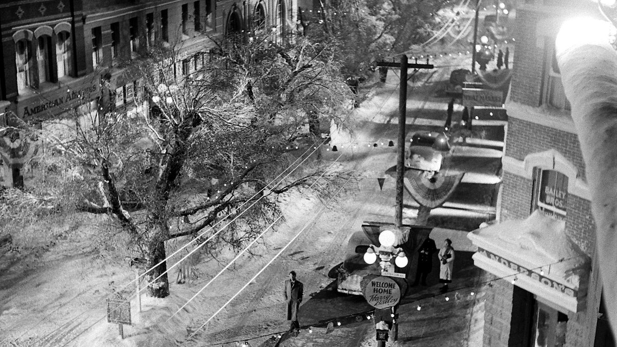 The film was shot in California during a summer heatwave. It got so hot that at one point Capra had to give the cast and crew a day off. And in the scene where George runs through Bedford Falls shouting “Merry Christmas”, we see sweat glistening on Stewart’s face.
