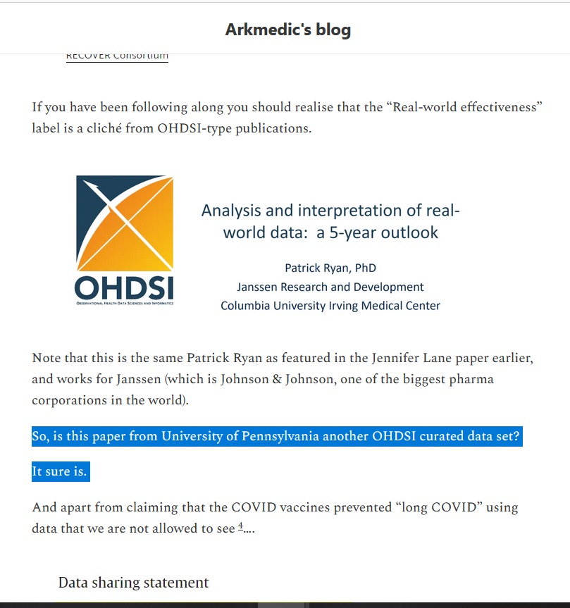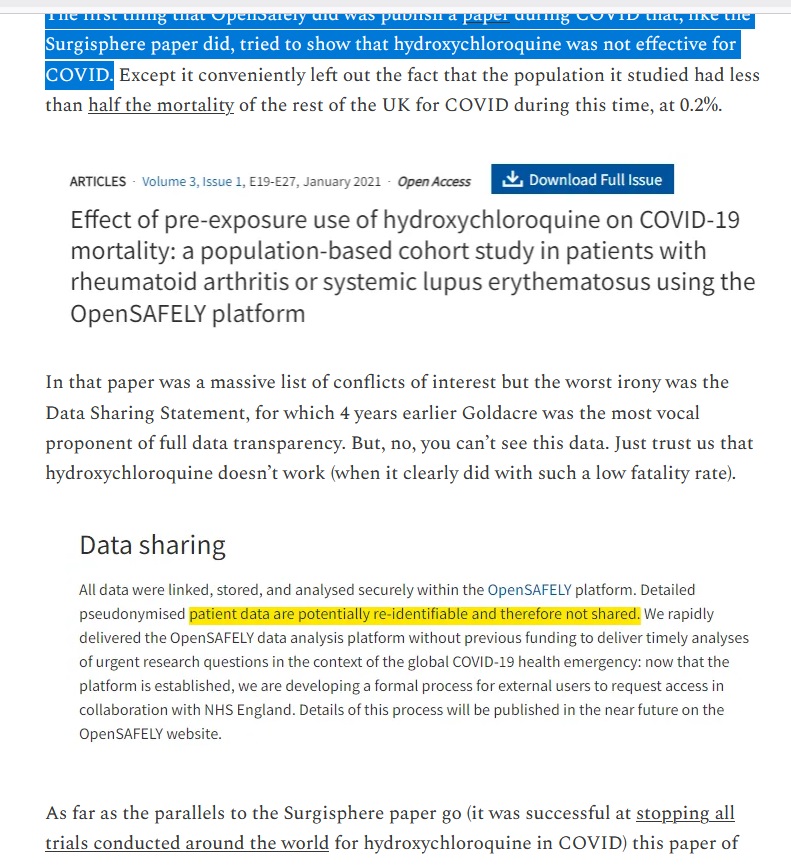 "The first thing that OpenSafely did was publish a paper during COVID that, like the Surgisphere paper did, tried to show that hydroxychloroquine was not effective for COVID .".. 🤔🎶