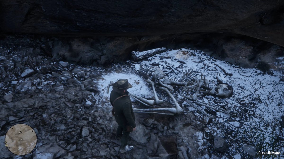 Around Mount Shann, you can find a skeleton of a giant human-like creature under a cliffside. Bigfoot previously made an appearance in RDR1's Undead Nightmare