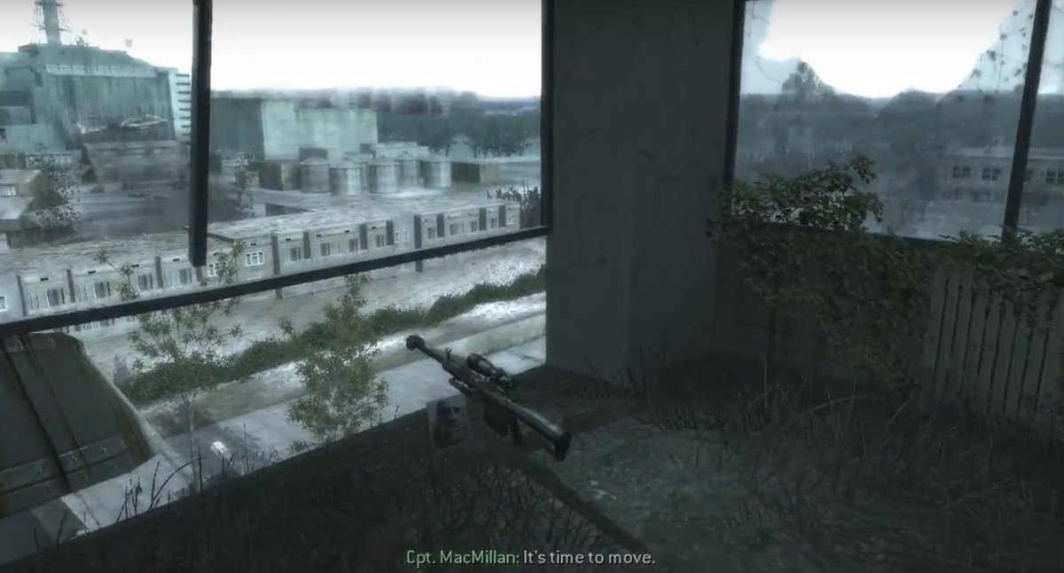 You can find the exact sniper rifle McMillian and Captain Price used in CoD4's Pripyat mission "One Shot One Kill" placed in pretty much the exact same location as the game.