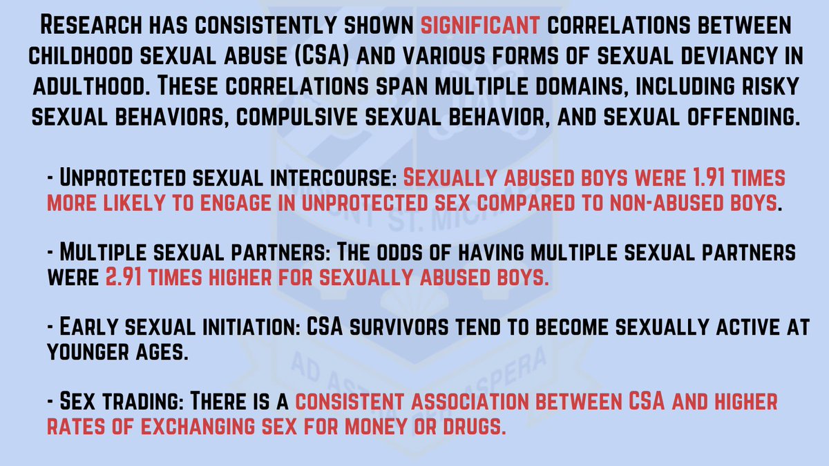 There are some irrefutable facts about child sex abuse & particularily how there are consistent & significant correlations between Child Sex Abuse and various forms of sexual deviancy in adulthood.
