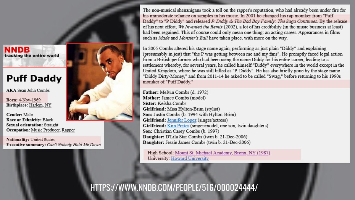 4🧵Sean's nickname "Puff" although a common pejorative in the UK for a homosexual, in the case of Mr. Combs the name originated from his years attending Mt. Saint Michael reportedly because Combs’ tendency to "huff & puff" when he was angry.