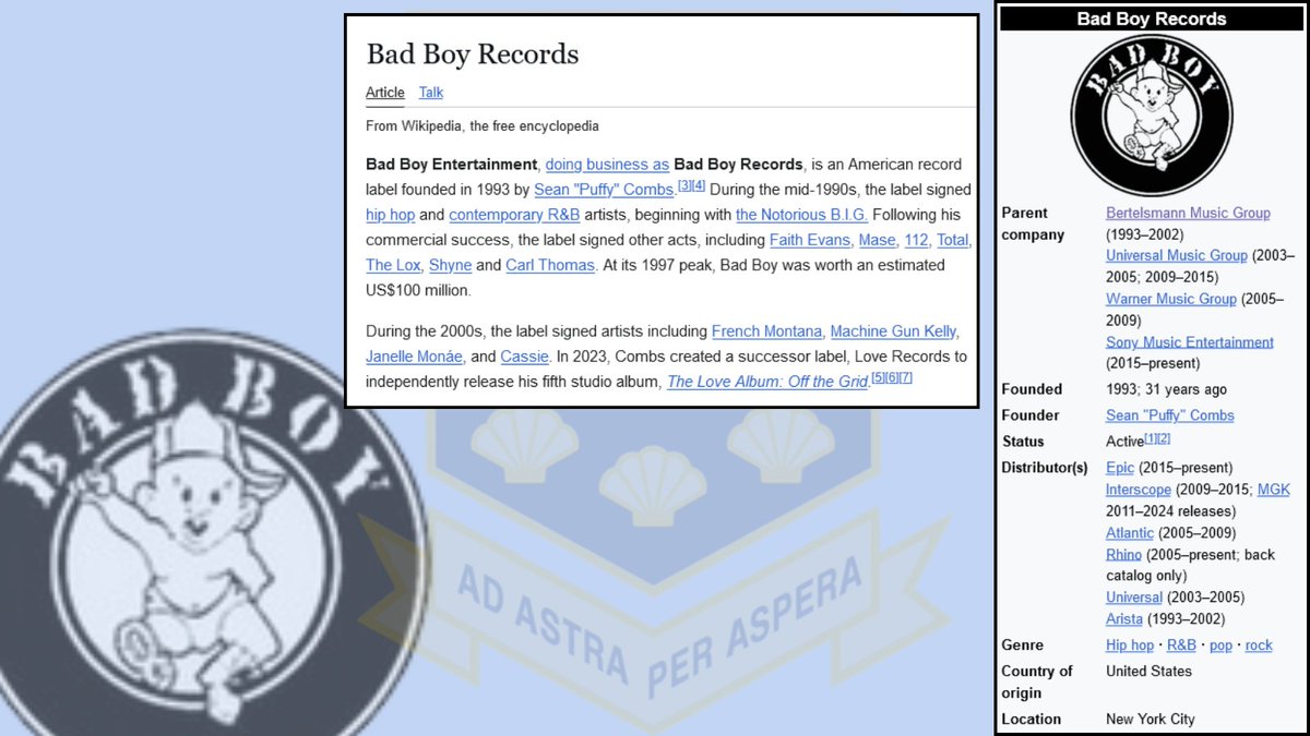 🔻Names his record label "Bad Boy" w/ a logo of an infant in boots. 🤔