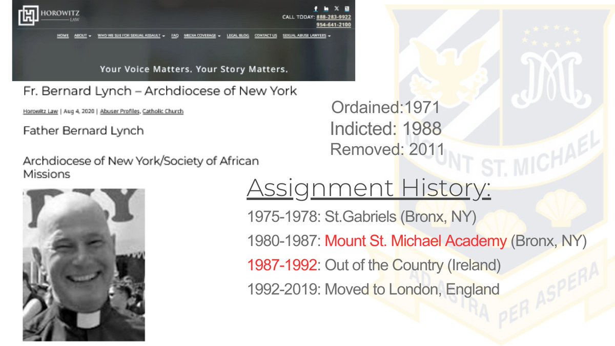 Bernard Lynch, the campus chaplain, faced multiple allegations over several decades, including a 1998 indictment and a 2019 accusation.