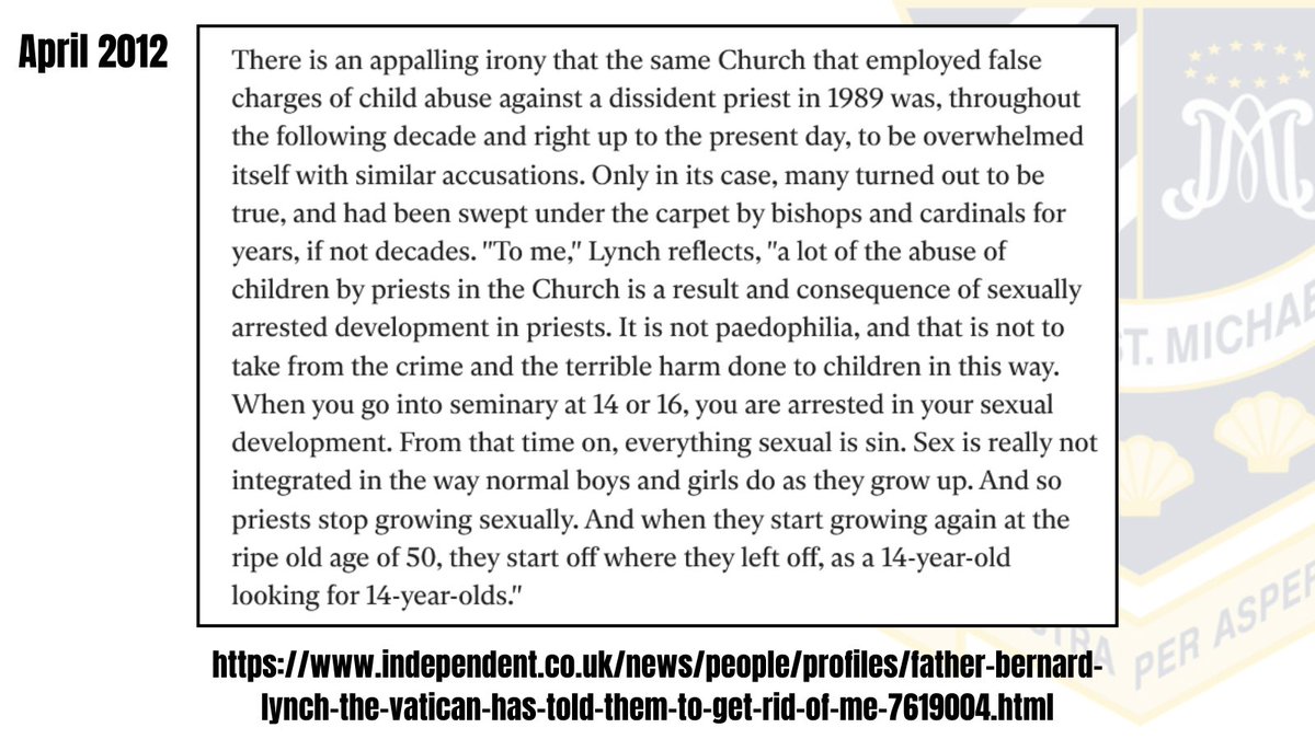 6🧵Lynch’s defense—citing repressed sexuality from early seminary education led to clergy sleeping with the youth but that he didn't consider that pedophilia is nothing more than grotesque attempt to justify abuse.