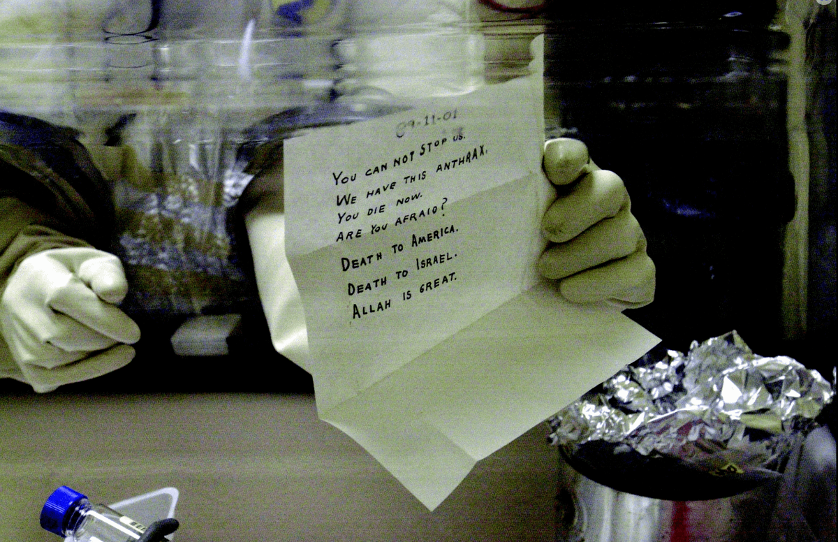 Bioterrorism struck the US one week after 9/11. Letters contaminated with anthrax were sent to politicians and media. Some e.g. these sent to NYPost and NBC, referred to 9/11.
