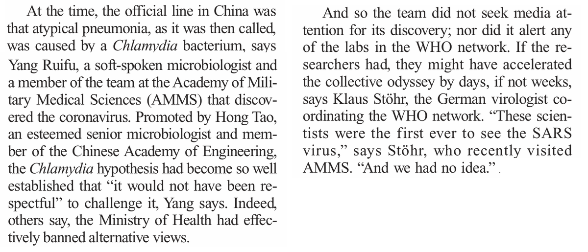 The role of HKU should also be questioned. Some HKU scientists worked closely with PRC authorities and military. HKU's microbiology department was declared a "State Key Lab", and received lavish funding to expand.