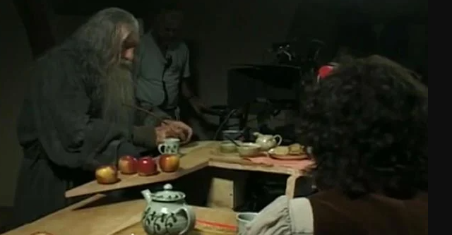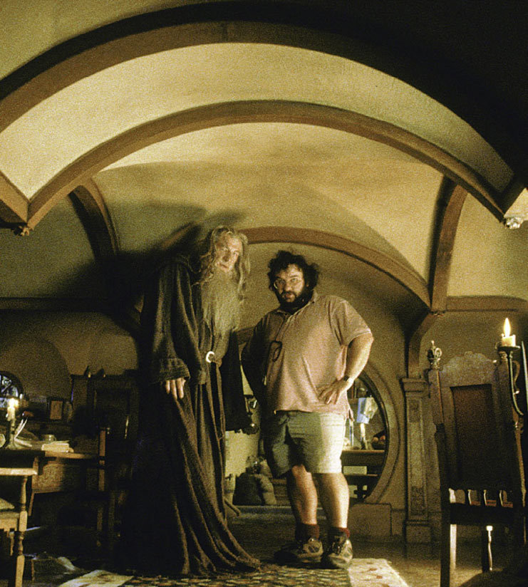 Two interior Bag End sets were created. One was made for the Hobbit actors, and another 33% smaller for humans. The moment Gandalf bangs his head on the ceiling wasn’t scripted, Ian McKellen did it for real, and Jackson left it in.