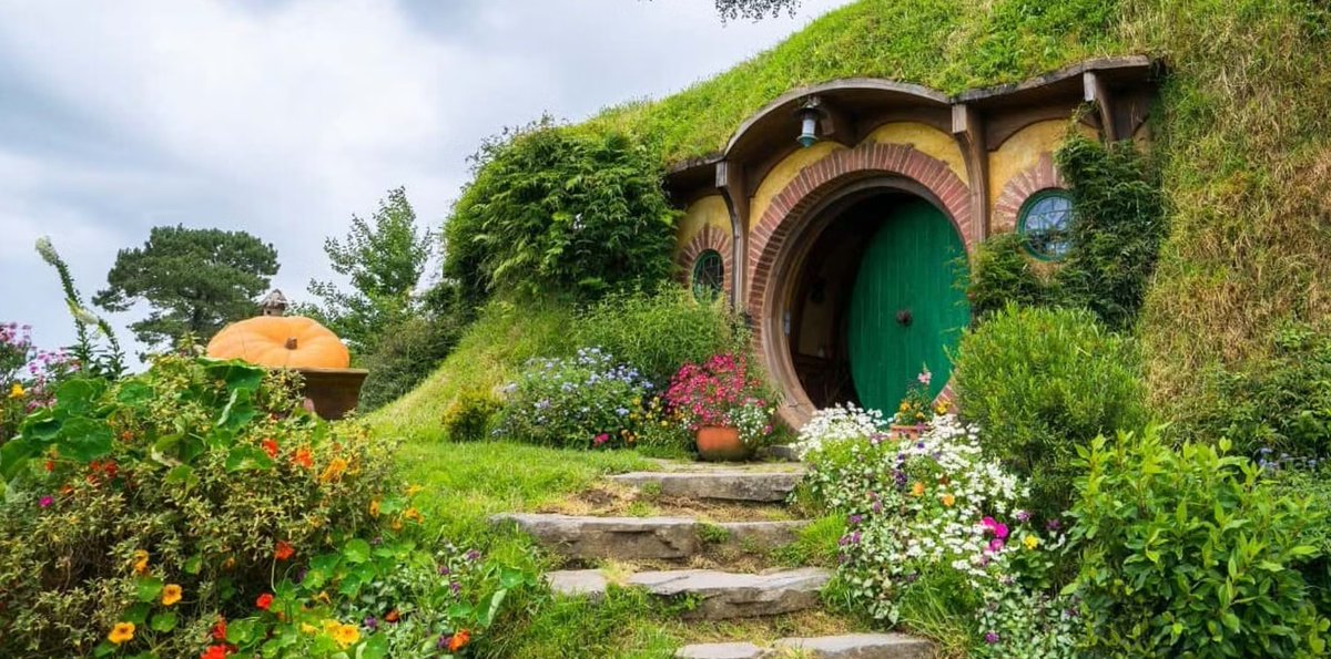 Hobbiton was made a year before production to make it look like it was a lived-in place, with real vegetable growths. About 28 Hobbit holes were created and the tree that stands above the Baggins’ home, Bag End, was specially built, with each leaf manually attached.