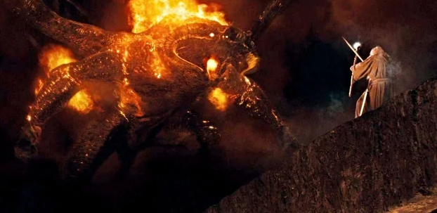 When filming the Balrog scene, Ian McKellen was focusing on a green ping pong ball in front of his face. And the moment the staircase collapses wasn’t in the script, it was created on the set and in post.