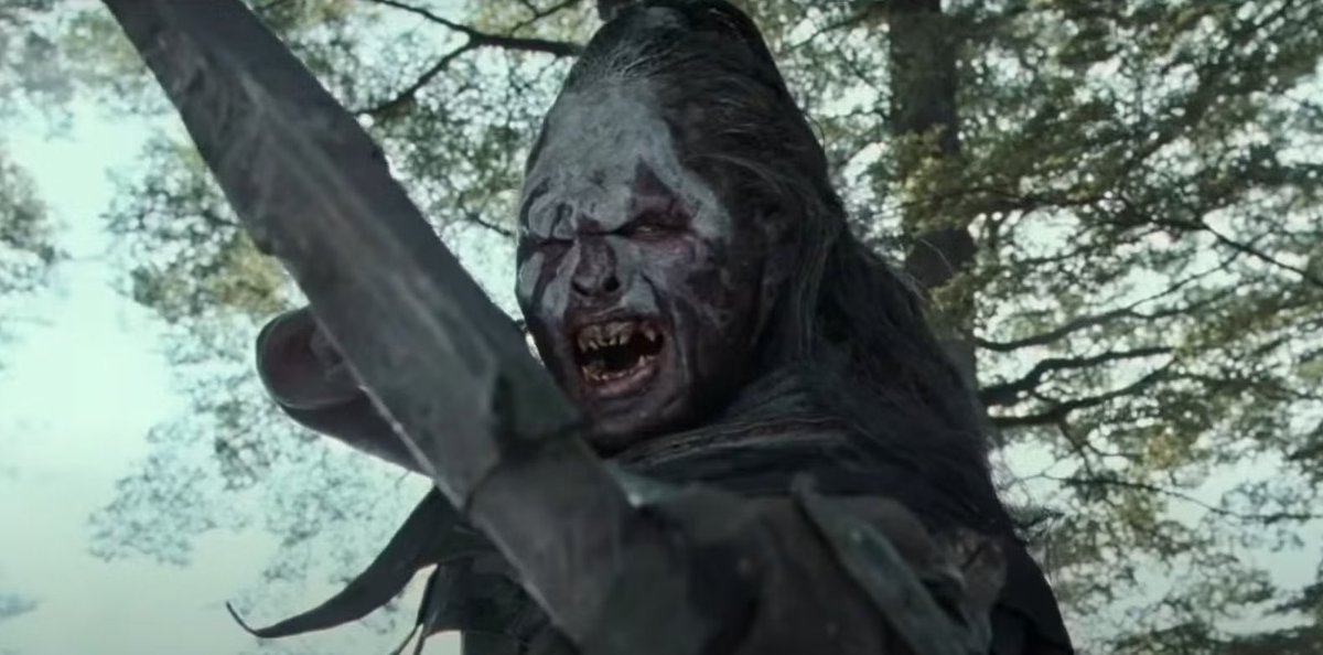 Lurtz, the lead Uruk-Hai, is not in the books. He was played by Lawrence Makoare, who would spend 11 hours in makeup before filming. Makoare was meant to throw the knife away from Mortensen, not straight at him, and Aragorn deflecting it was real.