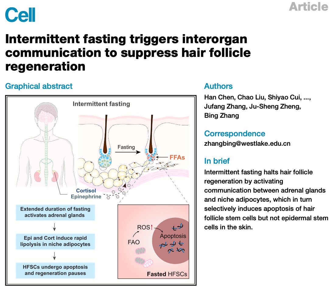 The researches began in mice, applying common intermittent fasting routines (16-8 time-restricted feeding [TRF] and alternate day fasting [ADF]), and found that each impaired hair follicle regeneration and slowed hair regrowth.