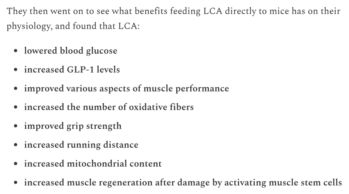 3/6) They then went on to see what benefits feeding LCA directly to mice has on their physiology, and found that LCA: