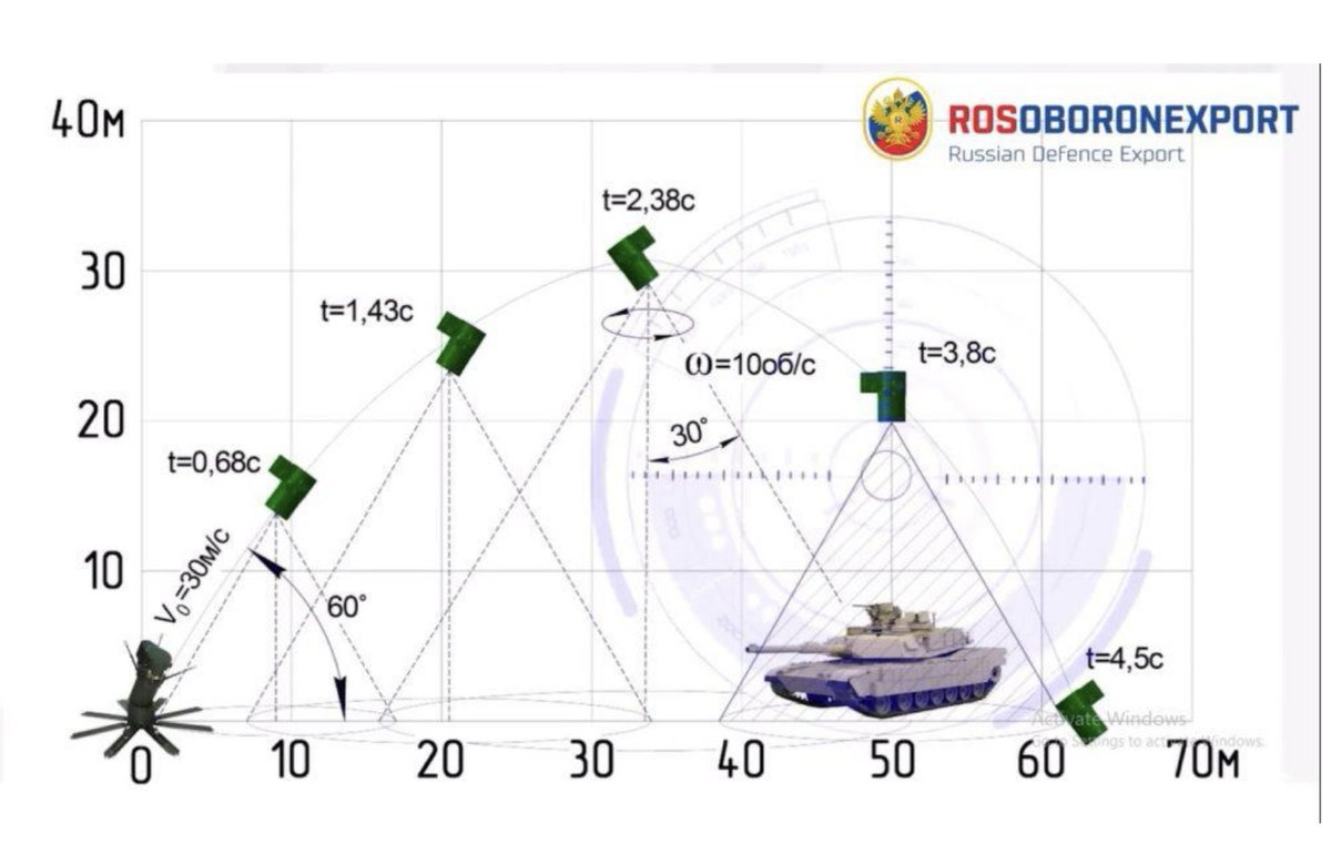 It was designed to disable Western MBTs by top attack where the armor is thinnest.