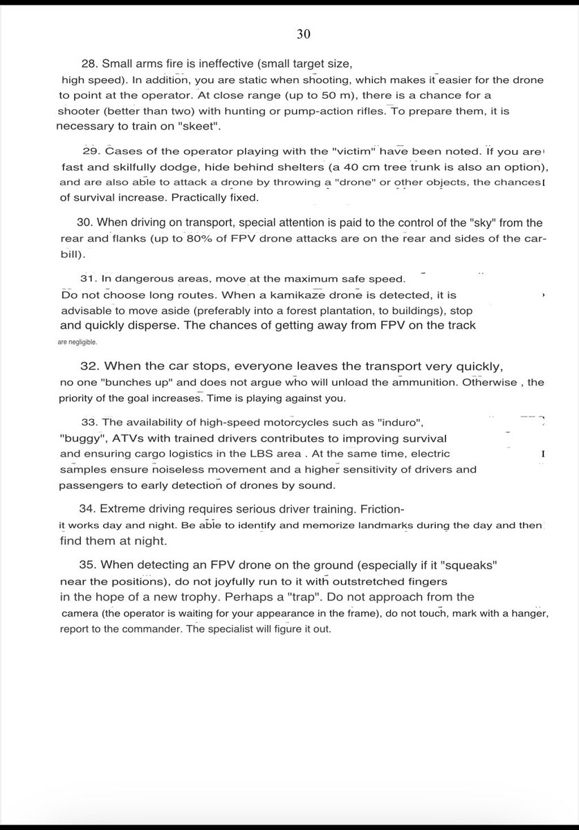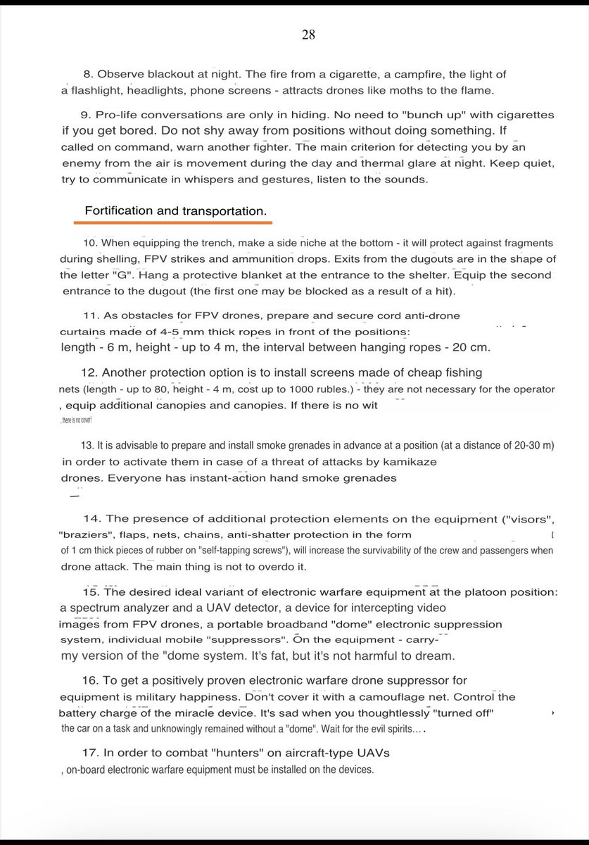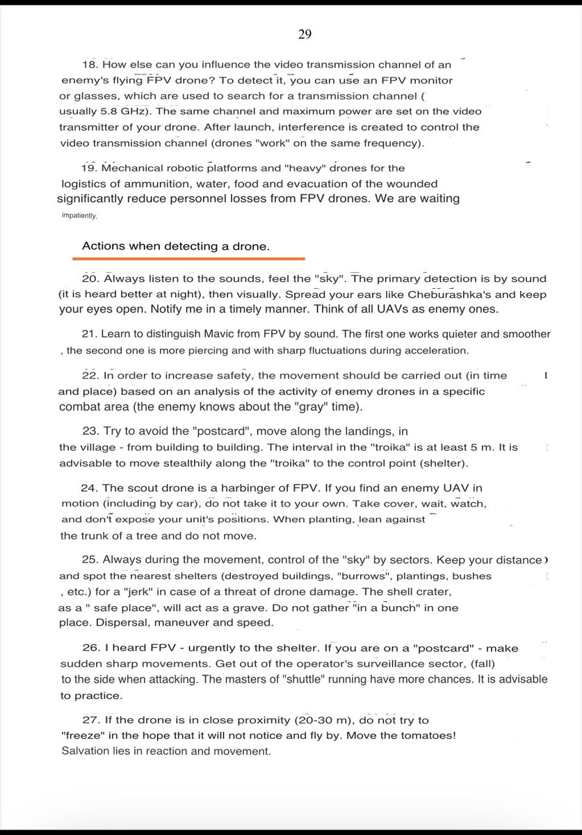 There has been interest in this Russian document on Ukrainian FPV tactics, so machine translations of the interesting section on Countermeasures have been added to the post. 1/