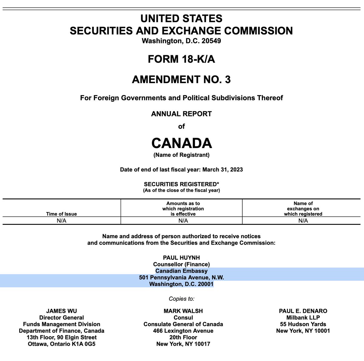 CANADA is a foreign corporation and all it's securities sit in the US SEC
