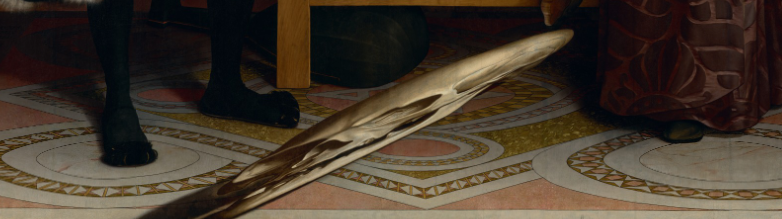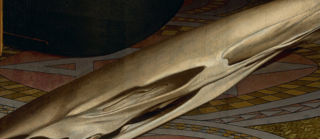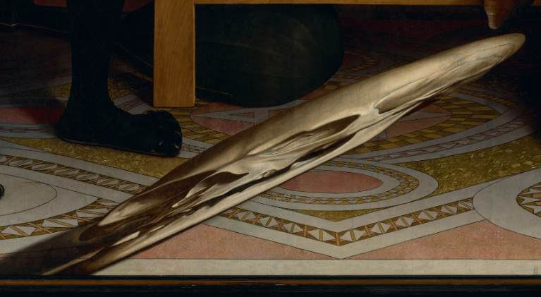 Holbein, one of the most gifted painters who ever lived, has painted the items with characteristic brilliance. Look closely at the carpet, and your brain struggles to understand that’s not a real carpet. 5/
