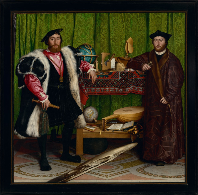 Let’s start with who we see in The Ambassadors. On the left is Jean de Dinteville, then the French ambassador to England. On the right is Georges de Selve, Bishop of Lavour, who visited de Dinteville twice in London in 1533. 3/