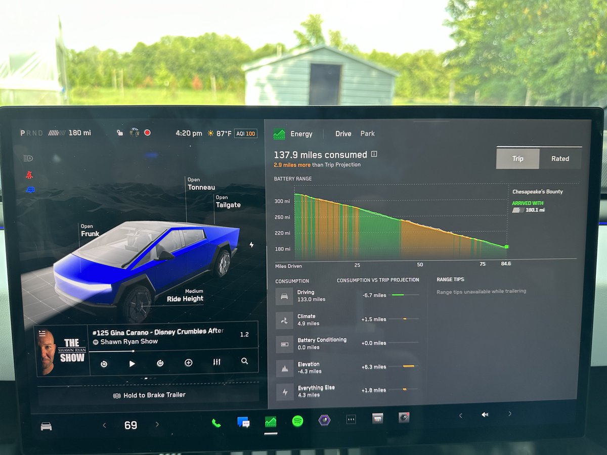 When I used to do this trip with my gas truck we’d always forget to drive 14mi round trip to fill up the tank so I would always hit the road with an unknown amount of gas and then have to look for a trailer friendly gas station. Now I just max charge overnight.Image