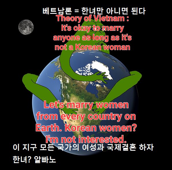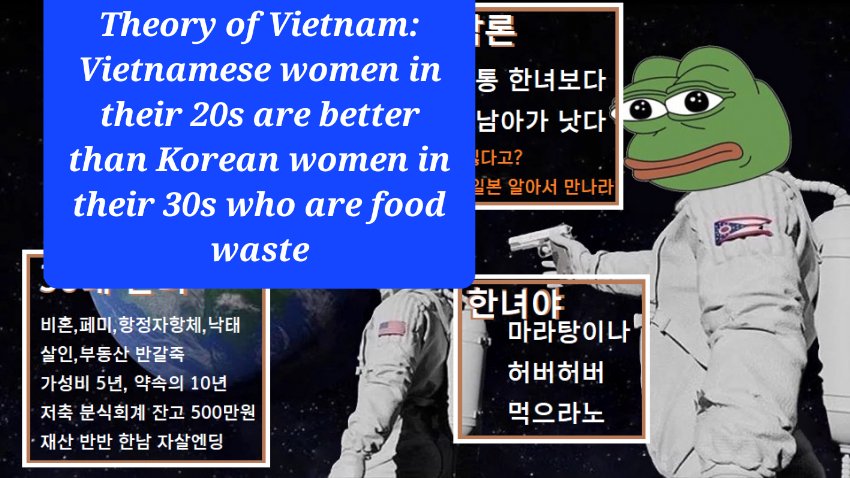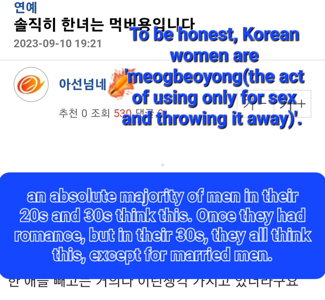 They also argue that the use of Korean women is only defined as a 'sex toy' and should not be recognized for any more value. (But they harshly criticize Korean women for not having sex, dating, marriage, or childbirth.)