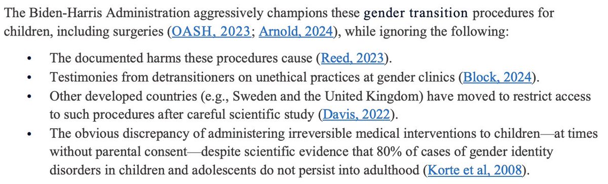 Despite the narrative of "overwhelming scientific support," there are no long-term studies on the effects these drugs will have on minors. Scientific evidence also shows that over 80% of cases of gender identity disorders in youth do not persist into adulthood.