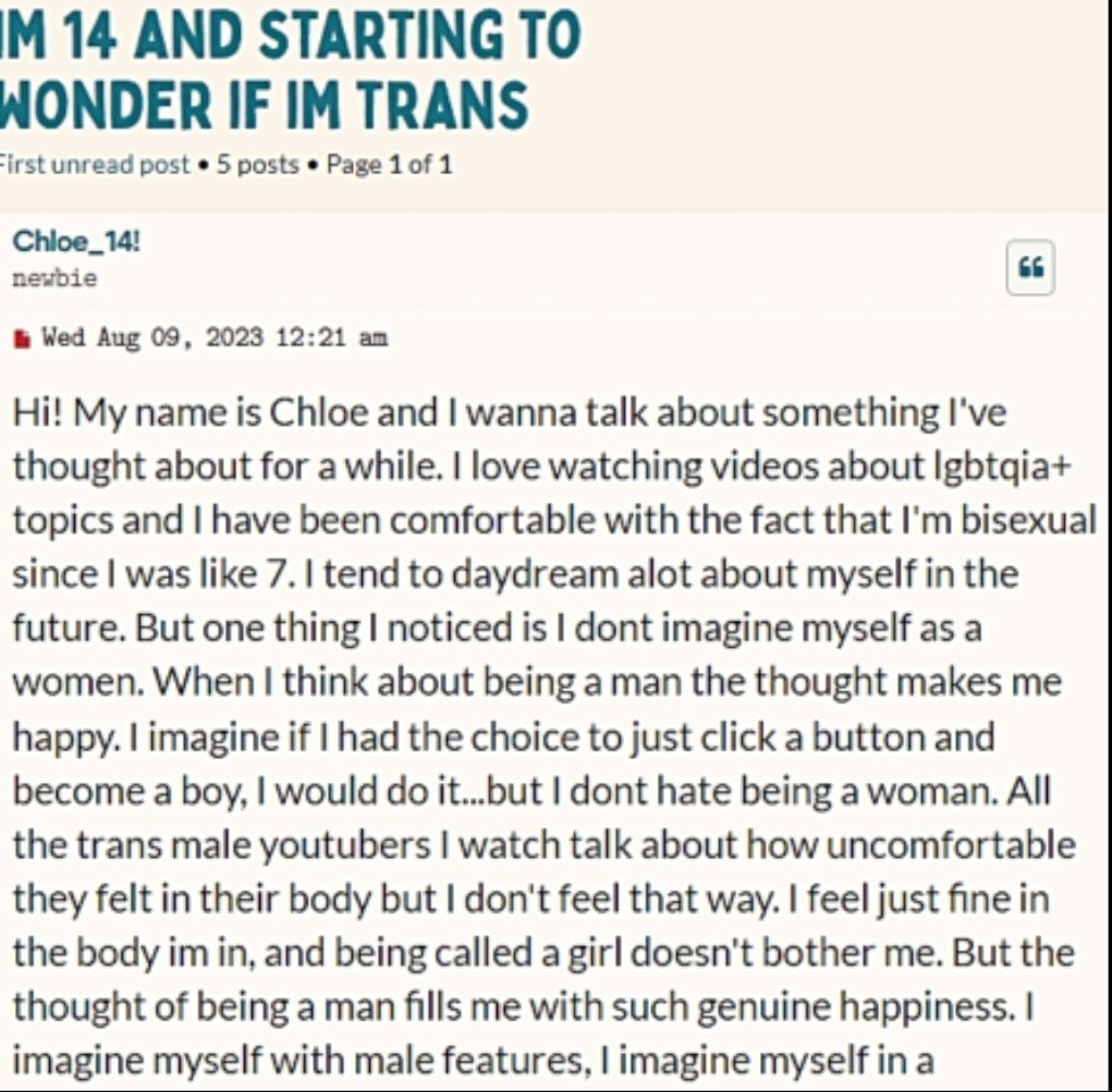 "I joined this fight because I witnessed first hand the severe damage being done to children psychologically and physiologically by people manipulating both studies and parents. Children deserve to grow up and make decisions as mature adults, not be chemically and surgically altered just to make adults in a cult feel better about themselves. The damage to both children and the LGB community must come to end today."